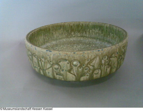 Steinzeug, weißer Scherben, glasiert, Reliefschnitt |