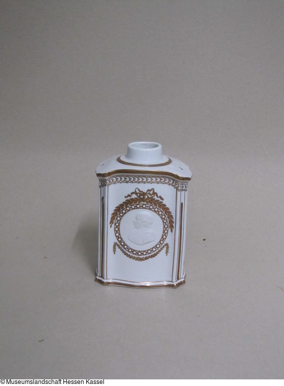Porzellan, glasiert, mit Goldstaffage. Büsten und aufgesetzte Punkte unglasiert |