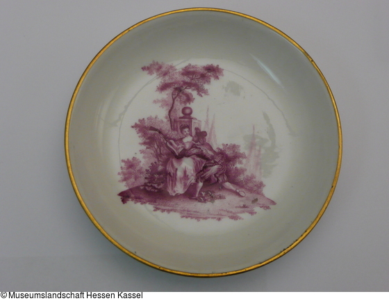 Porzellan, glasiert und bemalt, mit Goldstaffage |