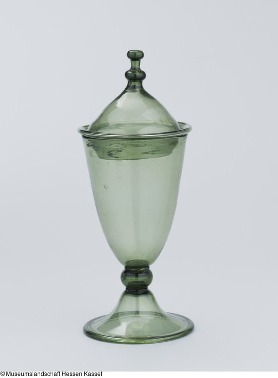 Wie das Mundglas Landgraf Philipps von Hessen-Kassel (KP B IX/I.140) wurde auch das Wilhelms IV. aus "Waldglas" gefertigt. Der Begriff bezeichnet Gläser, die produktionsbedingt eine grünliche Färbung haben. Sie geht auf das Eisenoxid in der als Flussmittel verwendeten Pottasche zurück.
