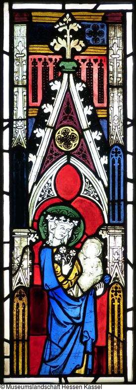 Fragment eines gotischen Glasfensters aus der Pfarrkiche in Winnen: Muttergottes mit Kind |