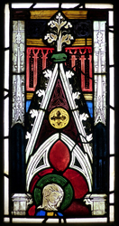 Die vier Fragmente eines gotischen Glasfensters stammen aus der Pfarrkirche in Winnen. Maria mit Schleier, Blattkrone und Rosenstrauch hält auf dem Arm das Jesuskind (KP 1907/425). Die hl. Katharina ist durch ihre Marterwerkzeuge Schwert und Rad gekennzeichnet (KP 1907/426).