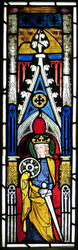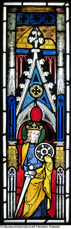 Fragment eines gotischen Glasfensters aus der Pfarrkiche in Winnen: Heilige Katharina