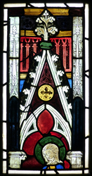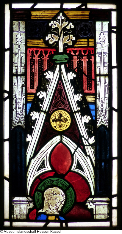 Fragment eines gotischen Glasfensters aus der Pfarrkiche in Winnen: Weibliche Heilige |