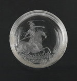 Deckel und Boden einer Glasbüchse "Landgraf Carl zu Pferd, Landgraf Carl und Minerva"