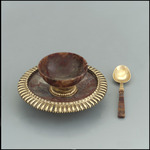 Silber, gegossen, getrieben, graviert, ziseliert, vergoldet; kalt bemalt; Achat, geschliffen, poliert |