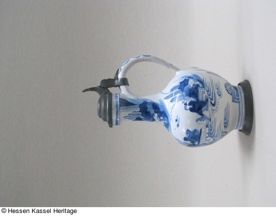 Fayence, glasiert und bemalt (Inglasur), Zinnmontierung