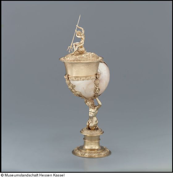 Werkstätten in China beschnitzten die Nautilusschalen für den Export nach Europa. Der Nürnberger Goldschmied Jamnitzer fertigte daraus Pokale, wobei er durch Meereswesen an Schaft und Deckel auf den Lebensraum des Nautilus Bezug nahm. Landgraf Wilhelm IV. von Hessen-Kassel kaufte das Pokalpaar (s. a. KP B II.72) 1588.