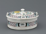 Fayence, glasiert und bemalt (Aufglasur) |
