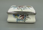 Material / Technik: Fayence, glasiert und bemalt (Inglasur), Silberfassung