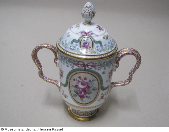 Porzellan, bemalt (Aufglasur) mit Goldstaffage |