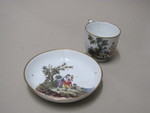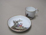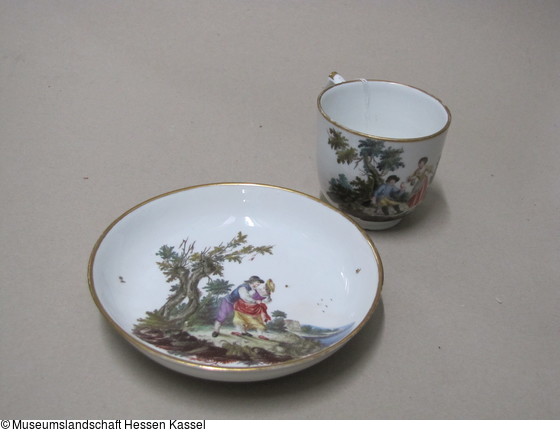 Porzellan, glasiert und bemalt, mit Goldstaffage |