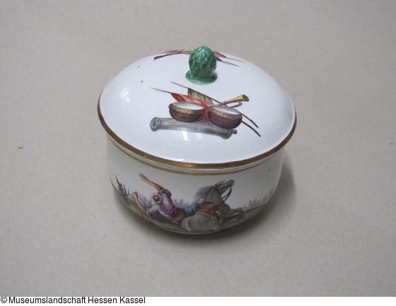 Zuckerdose eines Services mit Kampfszenen aus dem Türkenkrieg