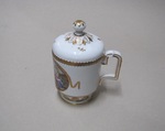 Tasse: 12,5 x 7,4 x 10,1 cm Breite mit Deckel, Tiefe mit Henkel (Objektmaß) Untertasse: 2,3 x 15 x 15 cm (Objektmaß)