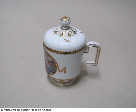 Porzellan, bemalt (Aufglasur) mit Goldstaffage |