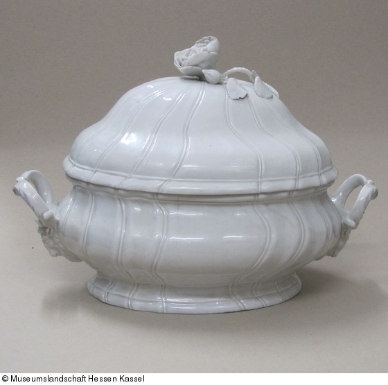 Deckelterrine mit Rosenknauf und Bockskopfhenkeln |