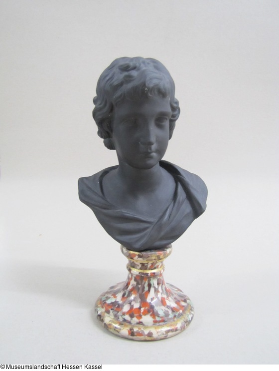 Schwarze Masse in der Art des Black Basalt von Wedgwood, Sockel aus gemischten farbigen Tonen, kalt teilvergoldet. |