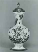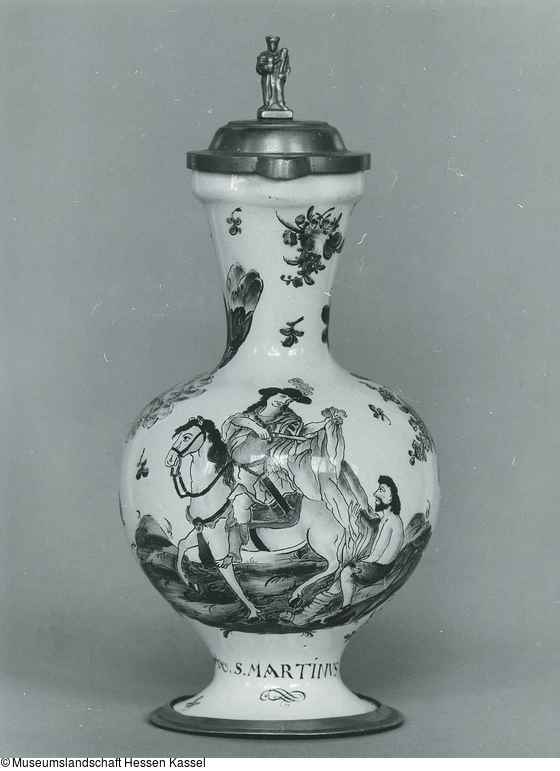 Fayence, glasiert und bemalt (Inglasur), Zinnmontierung