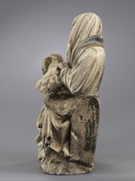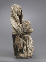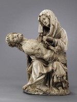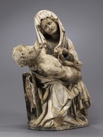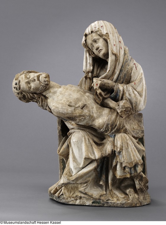 Das teilweise zerstörte Bildwerk zeigt die trauernde Maria mit dem Leichnam Christi auf ihrem Schoß. Sie bietet ihren toten Sohn dem Gläubigen zum Mitleiden dar. Dieser als Pietà oder Vesperbild bezeichnete Bildtyp zählt zu den Andachtsbildern, die dem Gläubigen innere Einkehr im Gebet ermöglichten. Seit dem 14. Jh. gehörten Skulpturen Christi, Mariens oder Heiliger zur Kirchenausstattung und wurden u. a. in Seitenkapellen aufgestellt.