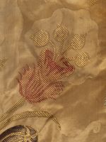 Seide (aus Lyon -?), farbiger Damast, goldbroschiert, teilweise mit Silberbrokat ausgeschlagen |
