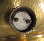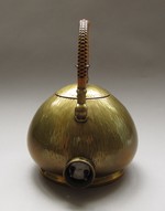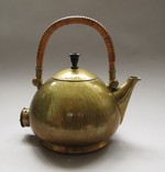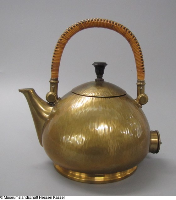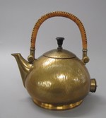 Messing, gehämmert, Rohrgeflecht, Holz, Porzellan |