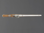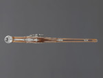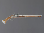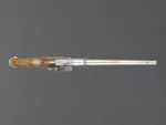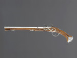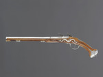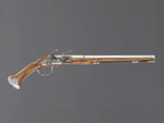 drei unterschiedliche Hölzer (Pistolenkörper, Ladestock und Ladestockende), Stahl, Silberlegierung |