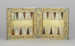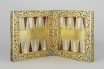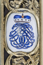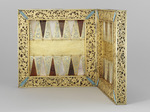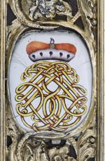 Der prachtvolle Brettspielkasten mit Feldern für Schach, Mühle und Tricktrack (Backgammon) stammt aus dem Besitz der Landgräfin Hedwig Sophie von Hessen-Kassel (1623–1683), einer Tochter des Kurfürsten Georg Wilhelm von Brandenburg. Dies geht aus den Spiegelmonogrammen der vier Emailmedaillons hervor, die kunstvoll verschlungen die Buchstaben „h S L h“ (Hedwig Sophie Landgräfin [zu] Hessen) unter dem Kurhut zeigen. Die Farben der Monogramme, Blau, Rot und Gold, verweisen auf die heraldischen Farben des Kurfürstentums Brandenburg und spielen wie auch der Kurhut auf die familiäre Herkunft der Landgräfin an.