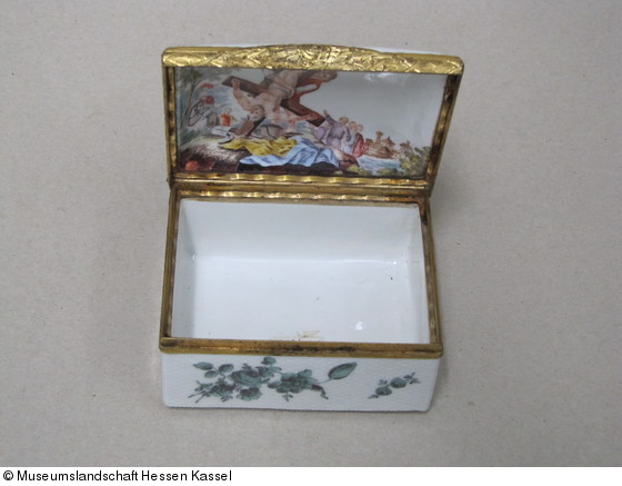 Porzellan, farbig staffiert, Kupfer, vergoldet |