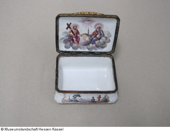 Porzellan, farbig staffiert, Kupfer, vergoldet |