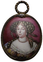Miniaturporträt Königin Charlotte Amalie von Dänemark (1650-1714), Gemahlin König Christian V. von Dänemark (oo 1667), Schwester des Ldgf. Carl von Hessen-Kassel |