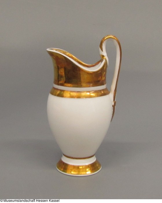 Giesser in Weiss mit Goldrand. Schlanke Form. (Eiform),