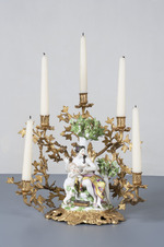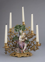 Bemerkung: Die Figurengruppe ''Muse des Gesanges'' ist mit dem Tafelleuchter, Inv.Nr. 4.5.20, fest verbunden. Die Muse des Gesanges ''Polyhymnia'' gehört zu dem aus neun Musen bestehenden Chor, der unter der Führung Apollons bei Homer und Hesiod beschrieben wird. Gegenstück der Figurengruppe ist die auf einer Lyra spielende Porzellanfigur des ''Apollon mit dem Pythondrachen'', der zusammen mit dem Pythondrachen von Delphi dargestellt ist, Inv.Nr. 4.1.1046.