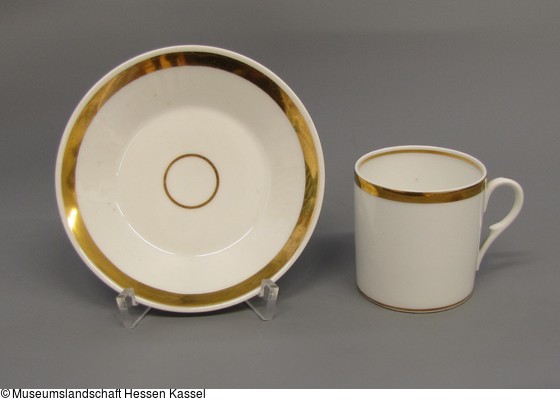 Tasse weiss mit Goldrand.