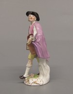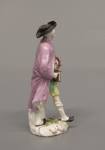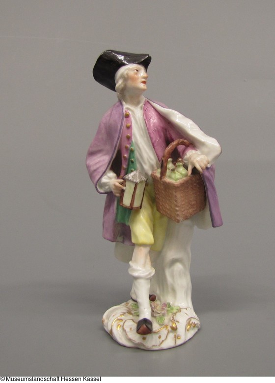 Bemerkung: Gegenstück zu diesem Modell bildet die Figur ''Eier- und Geflügelhändler'', Inv.Nr. 4.1.1030. Beide Figuren gehören vermutlich der Serie der ''Pariser Ausrufer'' (Cris de Paris) an, die nach einer Reise Johann Joachim Kändlers nach Paris im Sommer 1750 entstand. Die Figuren wurden sowohl von Kändler als auch von Peter Reinicke geschaffen.