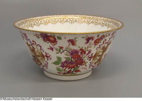 Porzellan, glasiert, Aufglasurmalerei, Goldstaffage |