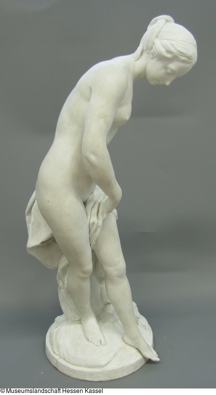 Nach der Marmorstatue ''Die Badende'' ( heute im Louvre) von Etienne Maurice Falconet in der Königlichen Porzellanmanufaktur zu Sèvres in Biskuitporzellan und verkleinert ausgeformt.