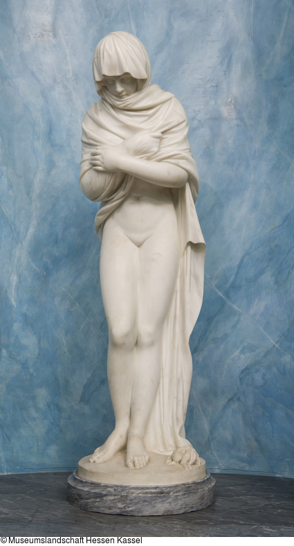 Wilhelmshöhe Inv. (Bilder-) Verz.S.52. In Anlehnung an ein Vorbild des französischen Bildhauers Jean Antoine Houdon (1741-1828), ''La Frileuse'' (Die Frierende), das in der Marmorausführung 1783 datiert ist (Modelle für die allegorischen Figuren des Sommers u. Winters 1781).