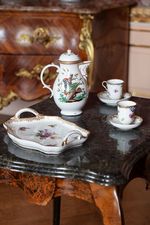 Porzellan. Polychrome Aufglasurmalerei in Purpurrot, Eisenrot, Grün, Blau und Gelb. Goldmalerei.