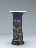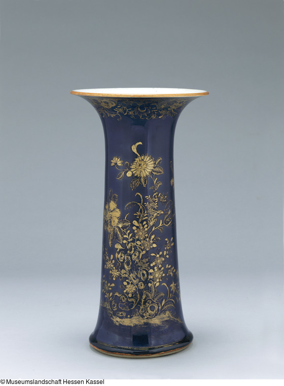 Porzellan, glasiert (Dunkelblau) mit Goldstaffage |