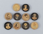 Runder Spielstein eines Brettspieles aus einer dunklen Serie mit den Darstellungen römischer Kaiser und europäischer Herrscher. Vorderseite mit Brustbild im Profil: Mann mit Schnurrbart, bekrönt mit Lorbeerkranz, in antikisierender Kleidung. Die Darstellung erhaben vor gepunztem Hintergrund. Seitlich auf glatter Fläche ehemals Aufschrift. Rückseite mit geschnitzter Nelke, erhaben vor gepunztem Hintergrund. Leicht erhöhter, profilierter Rand. Im alten Inventar erwähnt: ''Ein großes, schönes Damebrett, worin geschnittene Figuren p. eingelegt sind; dabey 14 schwarze und 13 weiße Steine mit den Brustbildern römischer und deutscher Kaiser.''