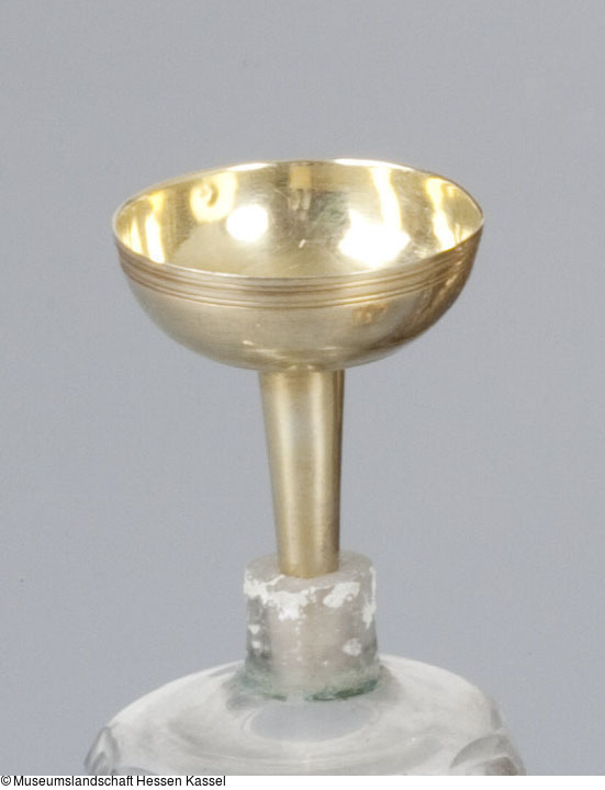 Der Trichter gehört zu einer Reiseapotheke bestehend aus einer Prunkkassette, darin sich sechs Flaschen, ein Trichter sowie ein Becher befinden.
