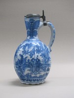 Fayence, glasiert und bemalt (Inglasur), Zinnmontierung |