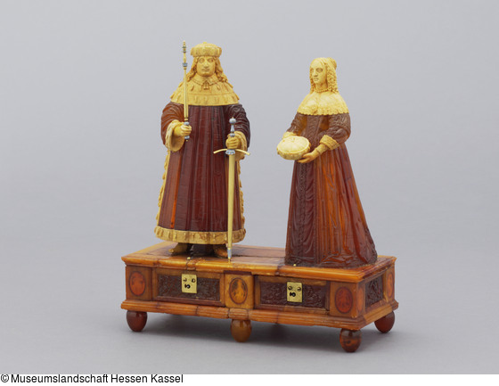 Bernsteinkästchen mit den Statuetten des Großen Kurfürsten Friedrich Wilhelm von Brandenburg und seiner Gemahlin Louise Henriette von Oranien