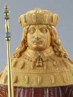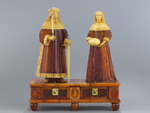 Bezeichnung: Bernsteinkästchen mit den Statuetten des Großen Kurfürsten Friedrich Wilhelm von Brandenburg und seiner Gemahlin Louise Henriette von Oranien