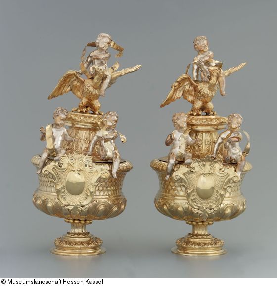 Sieben Prunkvasen - Prunkvase mit Putto auf einem Adler