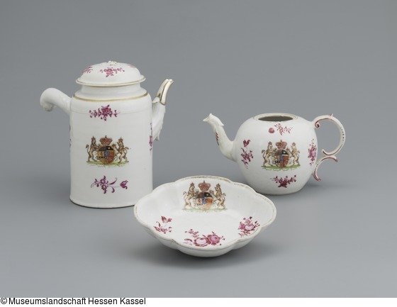 Teekanne, Teile eines Tee- und Kaffeeservices mit dem Wappen der Landgrafen von Hessen-Kassel (Chine de Commande)