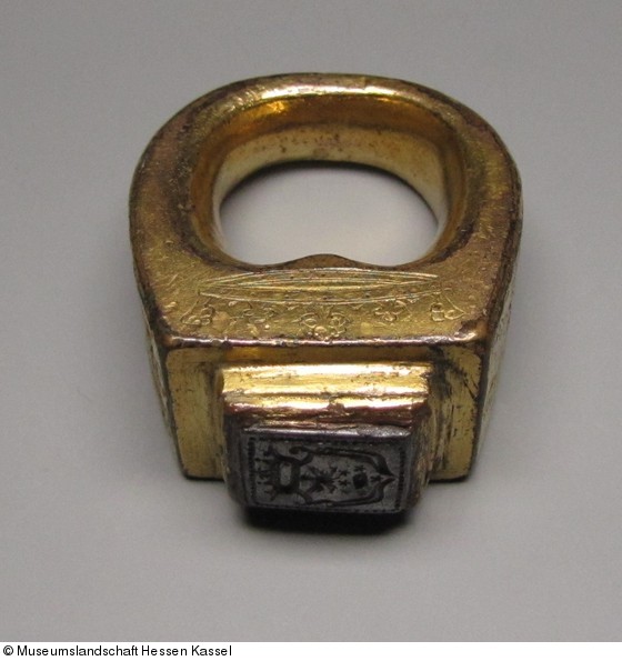 Bronze, vergoldet, Eisen (Siegelplatte) geschnitten |