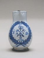 Birnförmiger Krug mit Emblemen des Gärtner-Gewerbes im Lorbeerkranz |