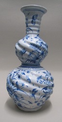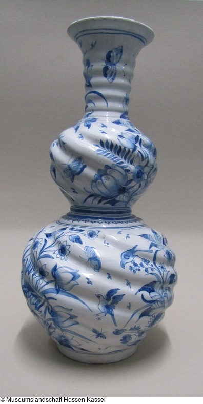 Doppelkürbisvase mit Sonnenblumen, Vögeln und Schmetterlingen