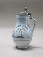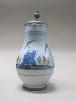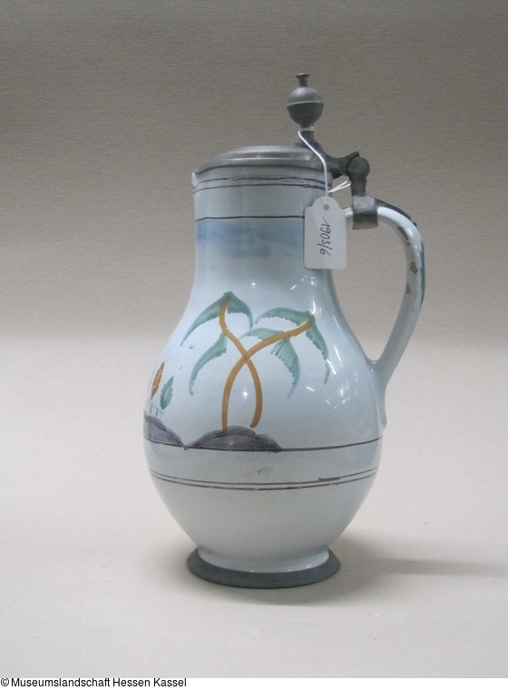 Fayence, glasiert und bemalt (Inglasur), Zinnmontierung |